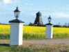 Maffiga grindstolpar lyfter fram entrén. Här med lyktor Köpenhamn i koppar från Kulturbelysning. Pris på offert.